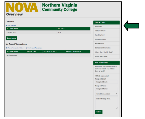 - Once logged in, Select ‘Add Funds’ from the Overview screen