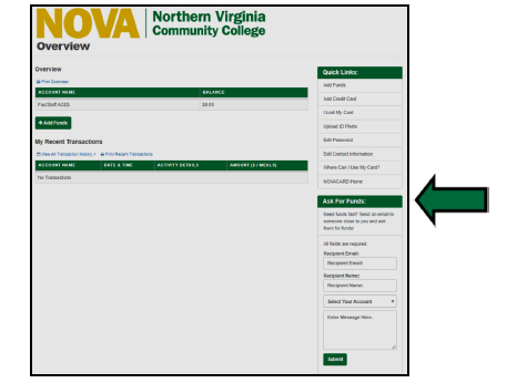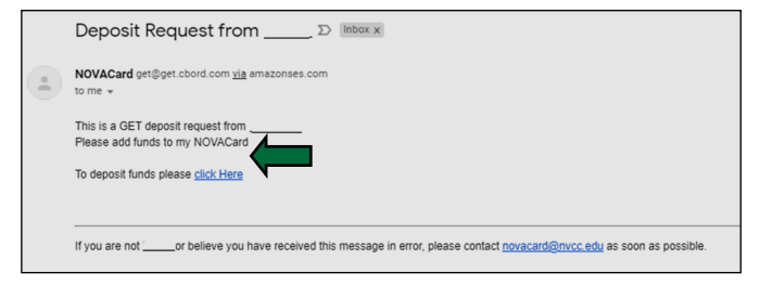 - For a family member or friend to add funds, they should click the link in the email request to be