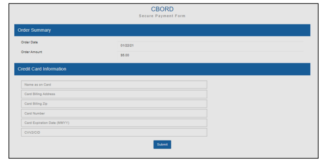 Payment Method Options are AMEX, Visa, and MasterCard (No Discover)