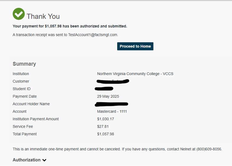 A confirmation page will be presented. You can print this page for your records if you elect to do so. The confirmation can also be viewed in your notification center.